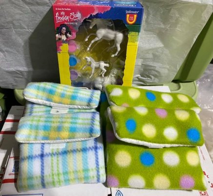 We have amazing raffles here, and more coming in - you guys! I just received an amazing packet from Robyn Jalbert - with 2 Traditional Saddle Pads, 4 Pebbles Saddle Pads, and gorgeous earrings!